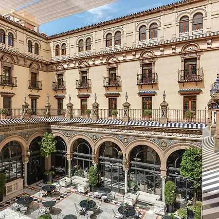 Situated beside Seville's Real Alcazares, Hotel Alfonso XIII features an outdoor swimming pool, gym, and a garden courtyard with a fountain. The rooms have elegant décor featuring air conditioning and minibars, along with complimentary internet access. Dining options include the Pool Restaurant and San Fernando restaurant that serves local Andalusian dishes. Guests can relax at the Americano cocktail bar or enjoy tapas at Ena Sevilla. This historic hotel is just a short walk from the Cathedral and offers access to the nearby River Guadalquivir.